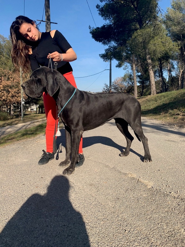 Elevage de dogues allemands de la Benjamine: + de 25 ans d'expérience. Les dogues allemands sont des molosses. Dogues allemands noirs, dogues allemands arlequins, dogues allemands bleus, dogues allemands fauves, dogues allemands bringés. Reproducteurs et lices LOF sélectionnés en fonction de leur beauté, de leurs cotations, et de leur caractère équilibré, radiographiés pour la dysplasie, identifiés ADN permettant de certifier les pedigrees des chiots. Les chiots dogue allemand de la Benjamine sont vendus dans le monde entier où leurs têtes très typiques sont reconnaissables.. Suivi du développement physique et comportemental des chiots. Les dogues bénéficient de grands enclos et de grands parcs pour s'ébattre et sont en contact perpétuel avec leurs congénères et les humains. On accorde beaucoup de respect au confort des chiens. Les dogues bénéficient d'une retraite heureuse sur le canapé d'un particulier ou à l'élevage.