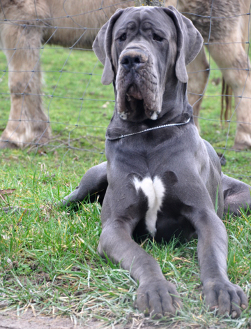 Elevage de dogues allemands de la Benjamine: + de 25 ans d'expérience. Les dogues allemands sont des molosses. Dogues allemands noirs, dogues allemands arlequins, dogues allemands bleus, dogues allemands fauves, dogues allemands bringés. Reproducteurs et lices LOF sélectionnés en fonction de leur beauté, de leurs cotations, et de leur caractère équilibré, radiographiés pour la dysplasie, identifiés ADN permettant de certifier les pedigrees des chiots. Les chiots dogue allemand de la Benjamine sont vendus dans le monde entier où leurs têtes très typiques sont reconnaissables.. Suivi du développement physique et comportemental des chiots. Les dogues bénéficient de grands enclos et de grands parcs pour s'ébattre et sont en contact perpétuel avec leurs congénères et les humains. On accorde beaucoup de respect au confort des chiens. Les dogues bénéficient d'une retraite heureuse sur le canapé d'un particulier ou à l'élevage.