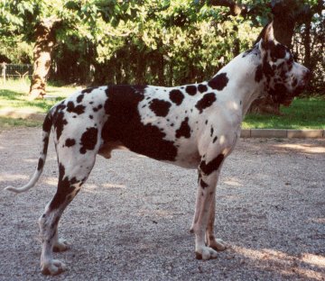 Elevage de dogues allemands de la Benjamine: + de 25 ans d'expérience. Les dogues allemands sont des molosses. Dogues allemands noirs, dogues allemands arlequins, dogues allemands bleus, dogues allemands fauves, dogues allemands bringés. Reproducteurs et lices LOF sélectionnés en fonction de leur beauté, de leurs cotations, et de leur caractère équilibré, radiographiés pour la dysplasie, identifiés ADN permettant de certifier les pedigrees des chiots. Les chiots dogue allemand de la Benjamine sont vendus dans le monde entier où leurs têtes très typiques sont reconnaissables.. Suivi du développement physique et comportemental des chiots. Les dogues bénéficient de grands enclos et de grands parcs pour s'ébattre et sont en contact perpétuel avec leurs congénères et les humains. On accorde beaucoup de respect au confort des chiens. Les dogues bénéficient d'une retraite heureuse sur le canapé d'un particulier ou à l'élevage.